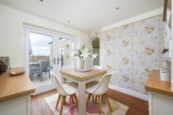 DINING ROOM: (2.69m x 2.66m) With a stripped wood effect flooring, panel glazed double doors opening to the rear terrace and door with Suffolk latch to: