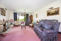 SITTING ROOM: 24' 0" x 17' 2" (12' 10") (7.31m x 5.22m (narrowing to 3.92m)) Affording a triple aspect with casement windows to front and rear with bay window to side. Views afforded from all aspects across the gardens with the focal point of the room being a yorkstone fireplace with inset grill.