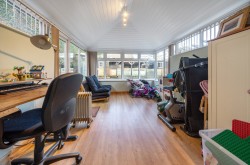 GARDEN ROOM: With triple aspect views of the rear garden and personnel door leading to the terrace abutting the rear. A versatile space capable of fulfilling a number of uses, currently a home office.
