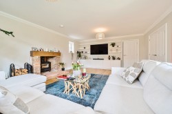 KITCHEN/BREAKFAST/LIVING ROOM: Forming the hub of the home, neatly comprising a range of fitted wall and base units with Quartz worksurfaces over. Integrated Rangemaster cooker with 6-ring gas hob and extractor over. One and a half bowl stainless steel butler sink with mixer tap and inset drainer. Dishwasher, integrated fridge/freezer and further space for freestanding fridge/freezer. Flowing openly to the breakfast/living space providing ample space for informal dining and entertaining. Door to:-