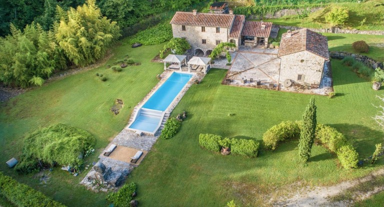 This restored stone farmhouse is set beautiful countryside between the fabulous city of Siena and the coast, close to the village of Radicondoli. The property consists of the main house, a guesthouse, an out-door stone gazebo and kitchen area built purposefully for al-fresco dining, a Spa area and an underground garage.