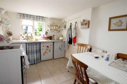 Kitchen/Breakfast Room: - 4.50 x 2.55 (14'9" x 8'4") - Fitted open fronted base cabinets with shelving over. Inset sink unit with mixer tap and drainer. Electric cooker. Space and plumbing points for washing machine, tumble dryer and refrigerator. Ample room for a small dining table. Tiled floor and door to:
