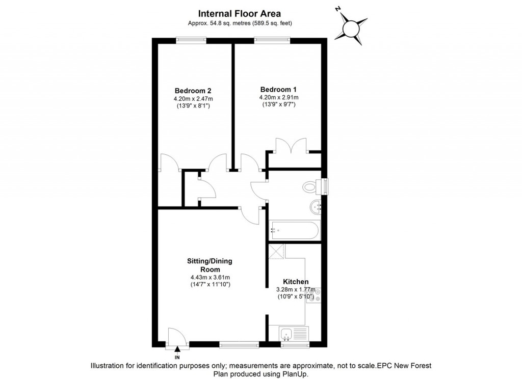 An attractive covered staircase leads up to the property where a front door opens into the sitting/dining room. This room is a good size with a west facing window out to the front bathing the room in light. The separate kitchen, accessed via an archway, has base and wall mounted units integral appliances, include a four ring gas hob, Neff oven, sink and space and plumbing for a washing machine, dishwasher and fridge/freezer. The kitchen also houses the combi boiler. An inner hallway has a linen cupboard and leads to the two double bedrooms and family bathroom. The principal bedroom is a spacious room with the luxury of a built in double wardrobe and a view out to the rear. The second bedroom is also a double and also benefits from ample built in storage. The family bathroom comprises a bath with shower over, low level wc and wash hand basin.