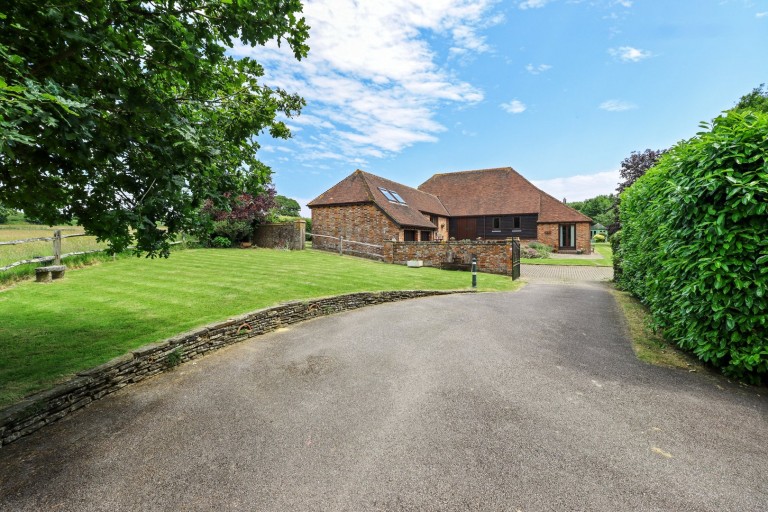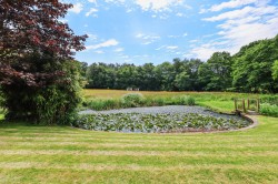 This wonderful detached period barn conversion stands in a slightly elevated location up a long private driveway surrounded by approximately 12 acres with a small area of copse, a lily pond and pasture grazing. The property was converted in 1989 and whilst being beautifully maintained, now requires general modernisation. The accommodation is approached through double doors to an impressive vaulted dining hall with galleried landing above. There are two principle reception rooms, one with a wood burning stove, a kitchen and a large home/office. The ground floor also has two bedrooms, both with an en-suite and to the first first are two additional bedrooms. All the rooms enjoy fabulous views over the garden to the adjoining countryside. The property stands slightly elevated at the end of a long driveway and the barn sits amidst established formal gardens that provide areas of lawn and many paved patios, one with a Summerhouse. There is a detached workshop/store as well as a double garage and separate double car barn with storage above. The property is bound by a stream which runs to an attractive lily pond with a bridge that connects to a 2 acre paddock and into an attractive deciduous copse. There is also a large area of additional pasture and grazing that wraps around the property and is thought to be ideal for those with equestrian interests (approximately 12 acres).