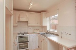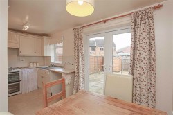 * Open plan kitchen/dining room with a range of modern cream units, electric cooker point, plumbing for washing machine, sink, space for fridge/freezer, work surfaces, window to rear overlooking the garden, space for table and chairs, door to garden.