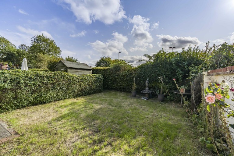 South Facing Private Garden: - 15m approx (49'2" approx) - A sizeable south-facing part walled garden lies to the rear with open views beyond. It wraps around two sides of the house and is laid to lawn with a planted border. There is a timber framed garden store.