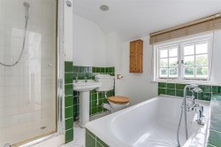 Family Bathroom - with a panelled bath with shower over, ceramic wash basin, low level WC, vanity cupboard, walk-in shower with electric shower, part tiled walls, tiled flooring, window to the rear aspect overlooking the garden.