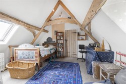 Ground floor: The entrance has a glazed front door opening into a light-filled hall, before leading you through to the pleasant drawing room. This is a very spacious entertaining area with views out across the gardens on both sides, and with exceptional ceiling height of 2.8m (over 9 feet), indicating its origin as a Hall house of some importance. It has exposed moulded oak beams that span the entire room, and an enormous Elizabethan brick-arched fireplace. The large Charnwood wood-burning stove in the fireplace is very capable of making this sizeable room feel warm and comfortable. To one side of the room, a panelled oak door leads to the dining room with another oak-beamed ceiling and windows on two sides providing light and views over the garden, which can be accessed through an arched glazed door onto a paved area and lawn. From here a door leads to the study/snug, the oldest part of the house dating back to 1360, a cosy, light-filled room with bespoke book shelves that line one side of the room and a small fireplace with a log-burner. The farmhouse-style kitchen is also accessed from the drawing room, which is another generous double aspect room with exposed beams and a large brick-arched fireplace housing an oil fired Redfyre oven. To one side there is a purpose-built, walk-in larder and a utility/rear entrance hall and back door. Most large windows have unobtrusive secondary glazing.