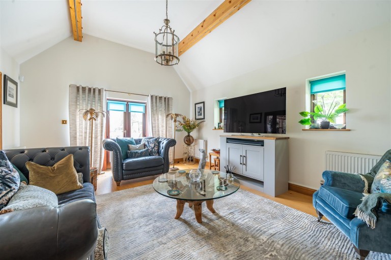 Ground Floor Accomdation - Entrance via oak doors into the hallway which has an attractive quarry tiled floor and panelled doors providing access to the inner hallway bedroom one, four and the family room. The family room has a vaulted ceiling with exposed A-frames a recli8amed brick fireplace with cast iron wood burner. French doors open to the garden room and panelled doors to the kitchen/breakfast and sitting room. The sitting room enjoys side countryside views and has doors to the garden room. There is a cast iron wood burner set into reclaimed brick fireplace. The garden room which has a light and welcoming feel with a large roof lantern which has climate control Velux windows. Through into the duel aspect kitchen/breakfast room which is fitted out with a range of cream cabinets and drawers, granite worksurfaces, twin butler sink, integrated dishwasher and fridge and a Falcon range cooker with matching extractor canopy. A panelled door provides access to the utility room which has doors to both the front and rear and the cloakroom. There are four bedrooms all with countryside views. Bedroom one has a three piece ensuite shower room with underfloor heating and built in wardrobes. The family bathroom is a three piece suite and also has underfloor heating.