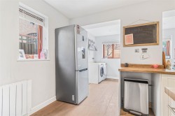 Kitchen/Breakfast Room - Fitted with a range of base and eye level units with work surface over and tiled splashbacks, stainless steel sink, space and plumbing for appliances, understairs storage cupboard, wooden flooring and window to the side aspect. Opening to: