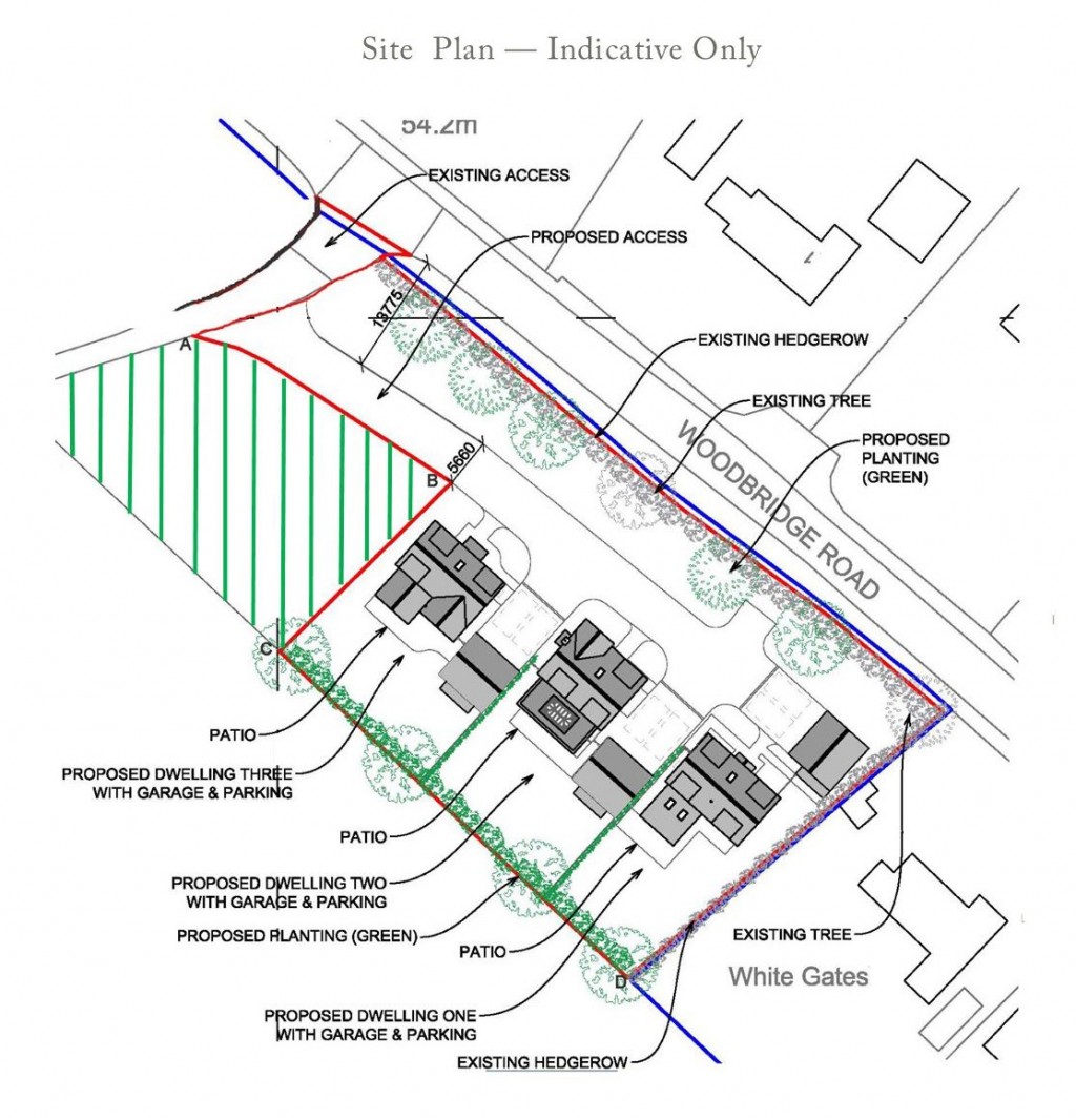 Outline Planning Permission was granted by East Suffolk Council on 14th June 2023 for the construction of three detached houses with a new shared access, on a site that extends to approximately 0.71 acres (0.29 ha) in all.