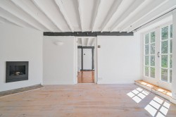 A beautifully presented detached cottage in the heart of this picturesque village. Approached via a wrought iron gate and railings there is a brick paved courtyard leading to the front door. On entering, the hallway leads to the vaulted kitchen at the rear with a range of fitted units including pan drawers, integrated fridge and freezer, dishwasher and space for washing machine, with stable door to the rear garden. There is a useful study or occassional bedroom three and ground floor cloakroom. Off the hallway is the pretty sitting room with open fire and French doors to the garden, completing the ground floor accommodation is the dining room, again with an open fire.