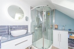From the kitchen, there is a beautiful Victorian style orangery with panelled glass roof and tiled underfloor heating. There is also a lower ground floor room with natural light suitable for a number of uses such as a home office or 5th bedroom. Upstairs, there is a dual-aspect principal bedroom with an en-suite shower room, two further double bedrooms, a single bedroom and a family bathroom with double shower.