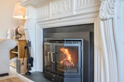 Approaching via the large gravel drive, you reach the front door beneath a covered porch and step into a bright and welcoming entrance hall which leads you straight into the large, elegantly furnished sitting room. This is a beautiful room with sliding doors opening onto the garden and a vast fireplace and wood burner that keeps the room warm and cosy during the winter months. Next door the dining room provides formal entertaining space plus garden access. The modern kitchen has wooden units and black granite countertops plus a number of integrated appliances including: three ovens, a microwave, an electric hob and a dishwasher. There is a separate utility which provides further storage space, plus a home office.