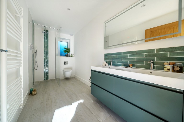 Bedrooms There are three potential double bedrooms on the ground floor, two with en suite shower rooms, and two of which could be used as a reception room. The five further bedrooms are on the first floor. The principal bedroom has fitted wardrobes and an en suite shower room, and overlooks the front of the property, while bedroom three also has an en suite shower room. All five bedrooms and the family bathroom are accessed from the L-shaped landing, which has several storage cupboards.