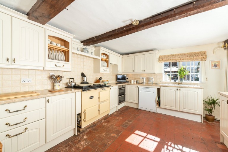 Ground Floor Highlights The entrance hall has stairs to the first floor and accesses the drawing room and dining room. An inner hallway leads to a second staircase to the first floor. The drawing room has an open fireplace and a door to a patio area, as well as double doors into the study. The dining room has a secret door into the breakfast room which has an inglenook fireplace with log burner and bread oven. The kitchen has an oil fired Nobel cooker and an electric hob/ oven, utility room and a walk-in larder. There is also a door to the courtyard garden.